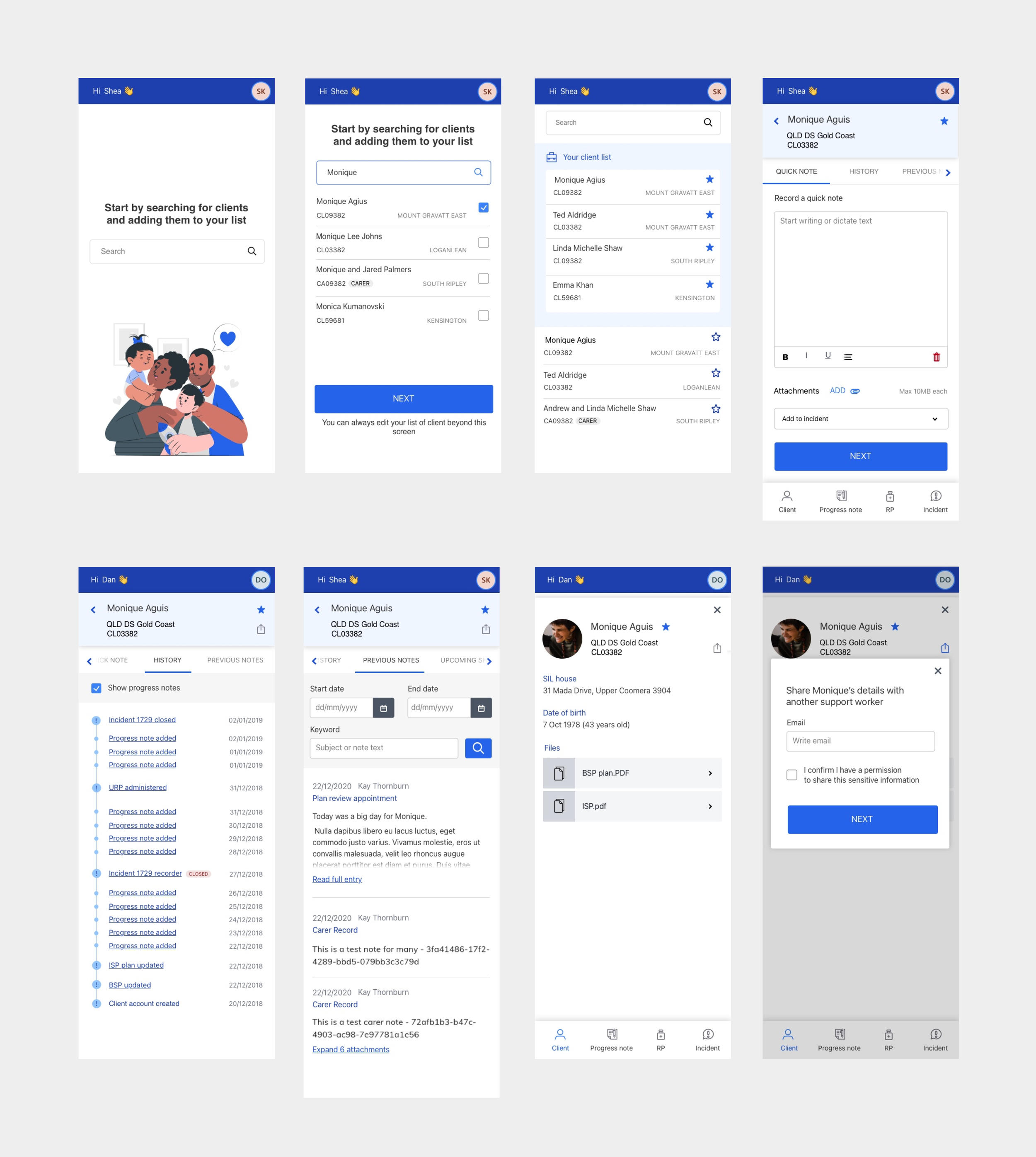 First goal of the app was to slowly replace and improve the experience of the existing desktop application that was used for record keeping across several sectors: disability support, foster care support, aged care and refugee and asylum seekers support.